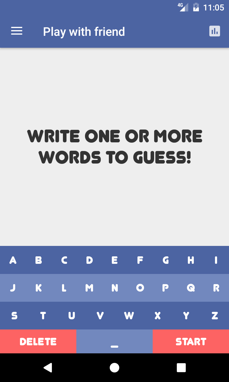 This is classic hangman game for guessing words but with a few modifications for better game experience. You can check your game statistics, change keyboard type, or even change difficulty. You can show or hide first and last letters. Also, there is an option to play alone or with your friends. Enjoy with thousands of words placed in many categories!
