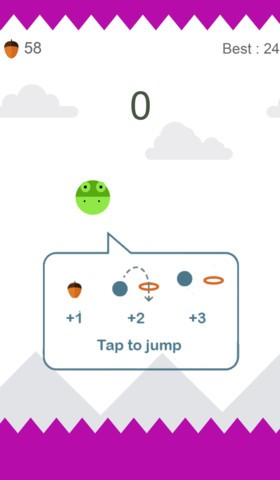 Jump into the hoops and avoid the spikes. Collect mushrooms to unlock all the funny characters!