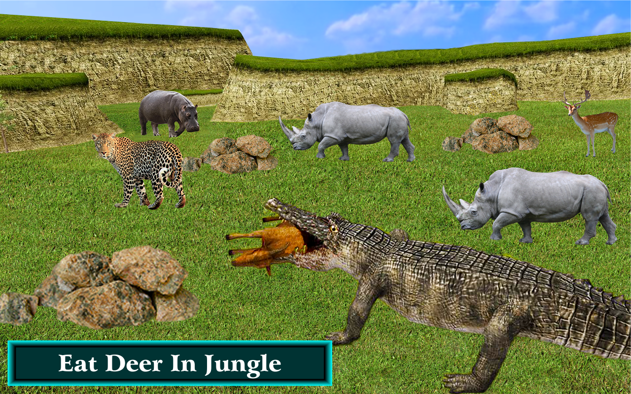Start the thrilling adventure in hunting category as crocodile attack free: wild 3d game in which you have to experience to eat animals, humans and fish to quench the crocodile appetite. Perform different operations like swimming, slithering, crawling and attacking to get meal from beach, jungle and within water. Accomplish tasks like emerge from water suddenly to capture your prey. Crawl on to the jungle bank water environment and beach side to explore and get next meal. Put the jaws of crocodile on human people and animals like deer, cow, goat, wolf, pig, tiger, lion, zebras and also aquatic life such as fish & sea animals. Interesting and thrilling 2 modes in hungry crocodile: real attack free game will make the user addictive. Realistic hunting animations and climate will additional attractiveness of this crocodile games wild attack adventure.