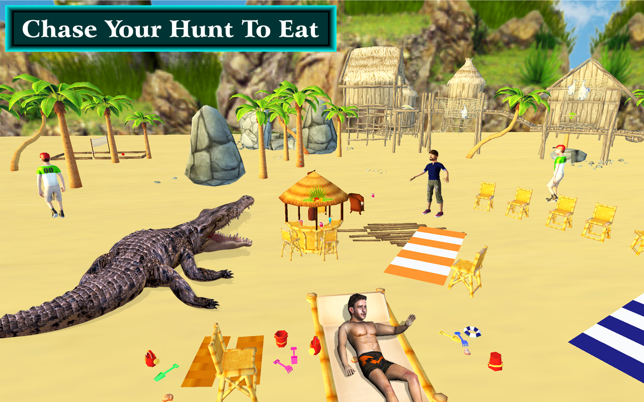 There are different challenges and stages of this hungry crocodile simulator attack gameplay. Start your first mode either beach attacking or jungle animal attacking. Learn the objective of each level and initiate to target humans, fish and wild lives. Crocodile is hungry and you have to quench its thirst by eating several lives from outside water. Eat fishes also like whale, shark and other sea animals. Target with big jaws on frantic prey to eat your favorite food. Some people disturb small crocodile, now your mission is to hunt them and save your family specie. Creep slowly and capture your meal rapidly to accomplish the challenges. People will run when they see crocodile but your task is to chase and get them. Perform your best to show your hunting capabilities to kill and eat different things. All levels of this wild crocodile beach 2018 game are exciting and unique. Probably you have played many hunting animals game but this crocodile simulator attack hunt experience is somehow addictive for users due to multiple option in crocodile selections and mode selection. Be finest attacker and don’t get your food away in this crocodile attack game: real hunt adventure.