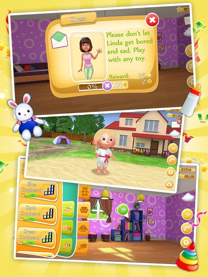 Complete numerous quests! Gain experience and receive game currency - BabyCoins - for each task.