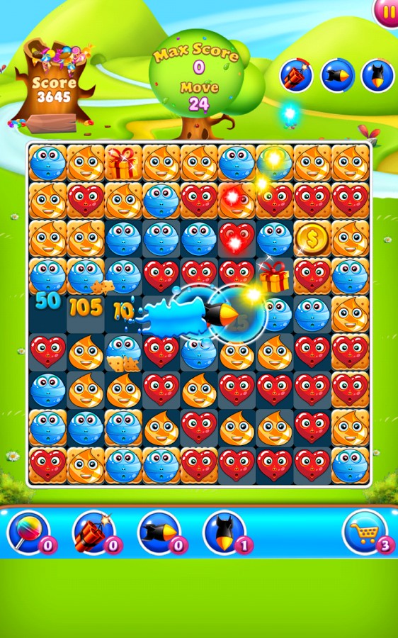 ✔ Try to move free gold coin, extra power-up to the bottom to get it. Use gold to buy more power-ups in Candy Store