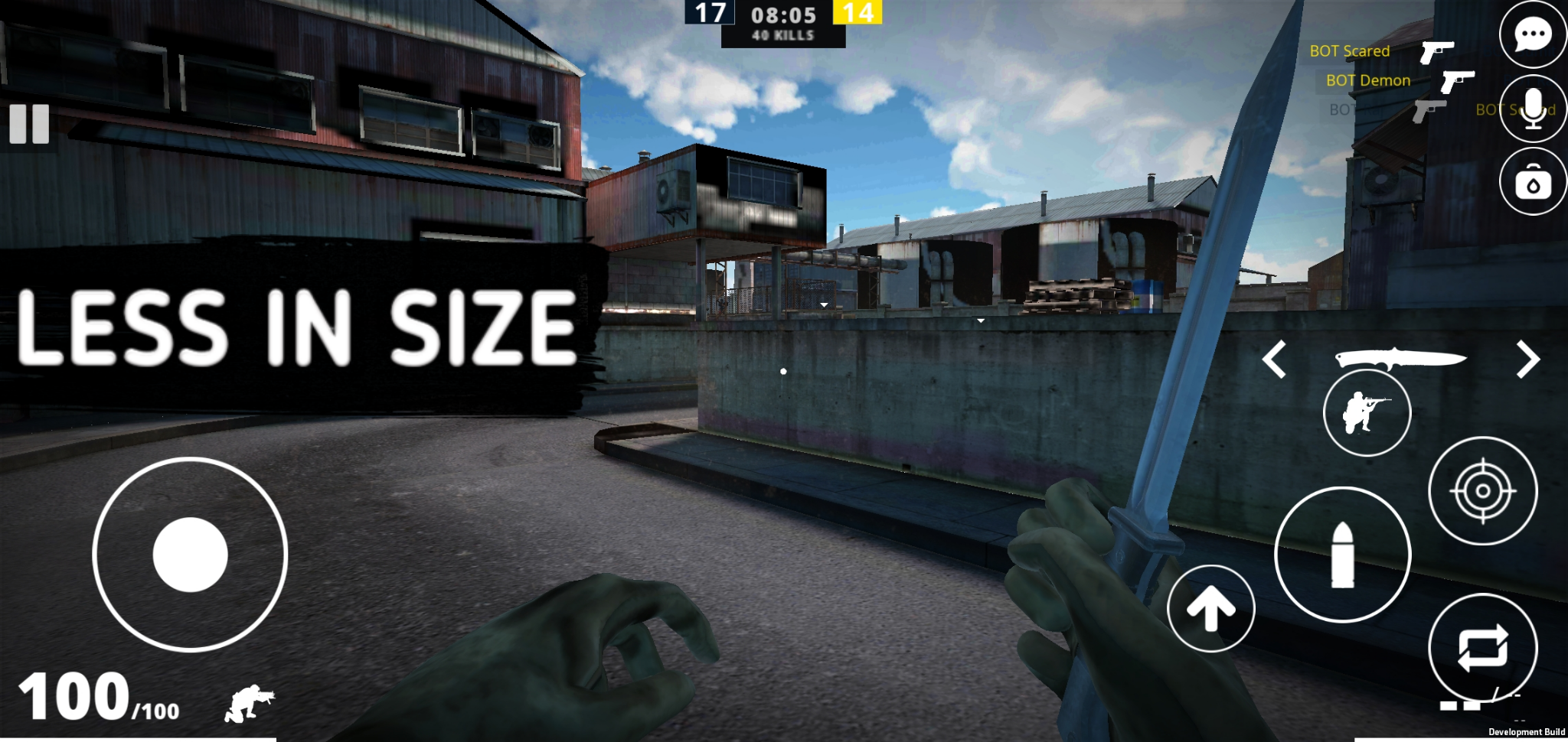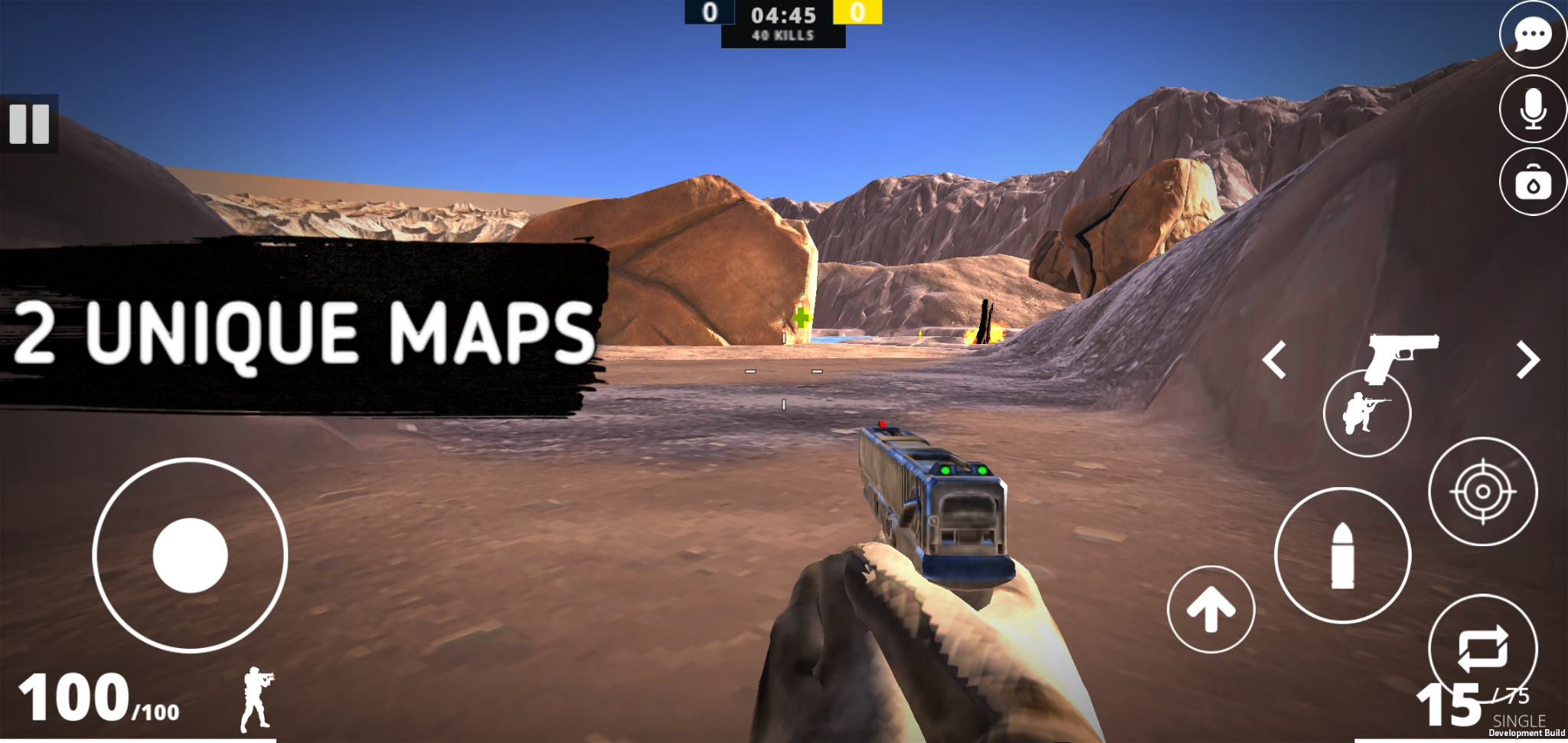 Multi-Player Game which consists of the Create Room feature so that you can Play and Also You can Host Tournaments. It has many Modes like 2vs2, 4vs4, 6vs6, and with 2 included maps having many weapons to test your skills and Fabulous Maps to play and enjoy with Easy and reliable Awesome Controls and Plus Point you can Adjust PING on your own. So that it will easily run in any device. You can also Adjust Sensitivity as per your convenience and skillset and many more.