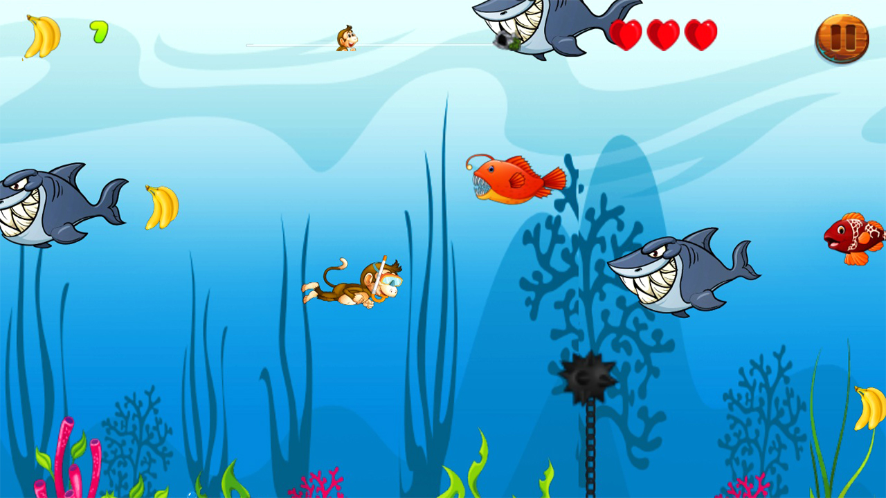 The story begins as a Monkey Kong was living in a jungle happily with its kids having plenty of bananas. One day an angry bird takes our monkey Kong’s kid with a bunch of bananas and flies to the dino jungle. This game consists of 4 worlds with 24 stages that contain plot twists and continued by 1 special water world including lots of fishes and mines under water. All together Jungle Monkey Run 2 make the best game of the month. Additionally, powerups and the effects make the gameplay exciting and addictive.