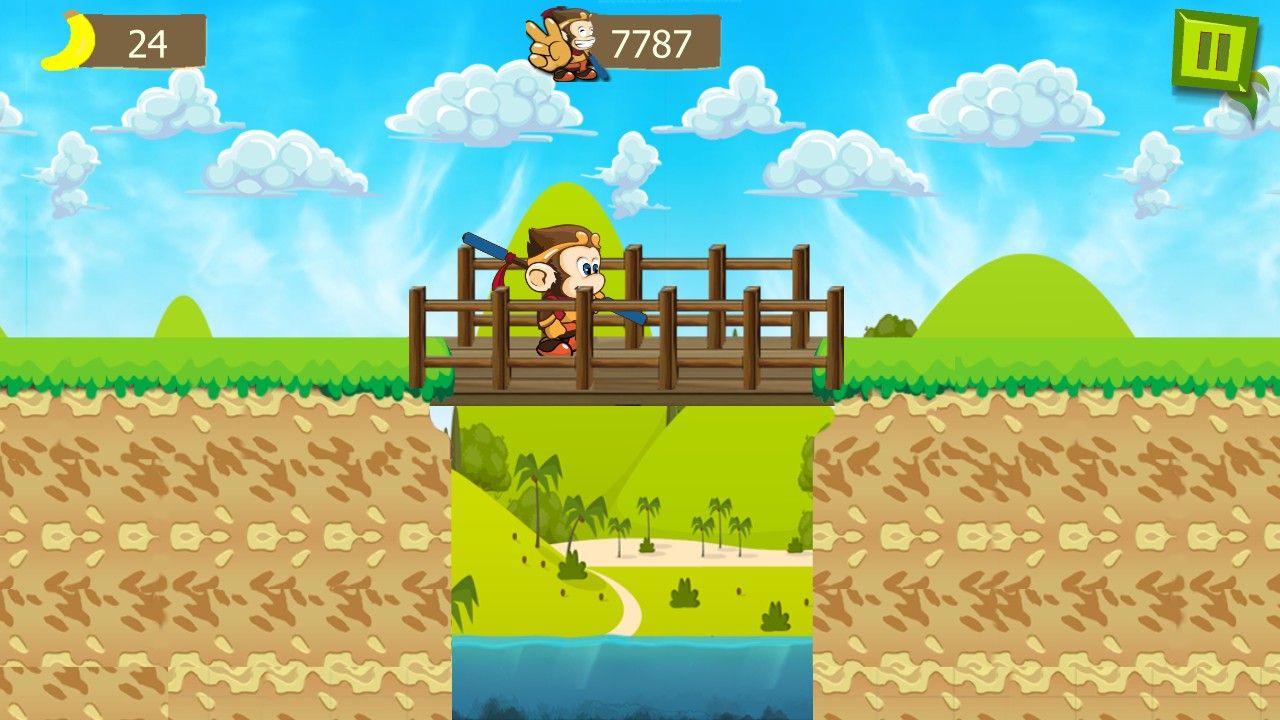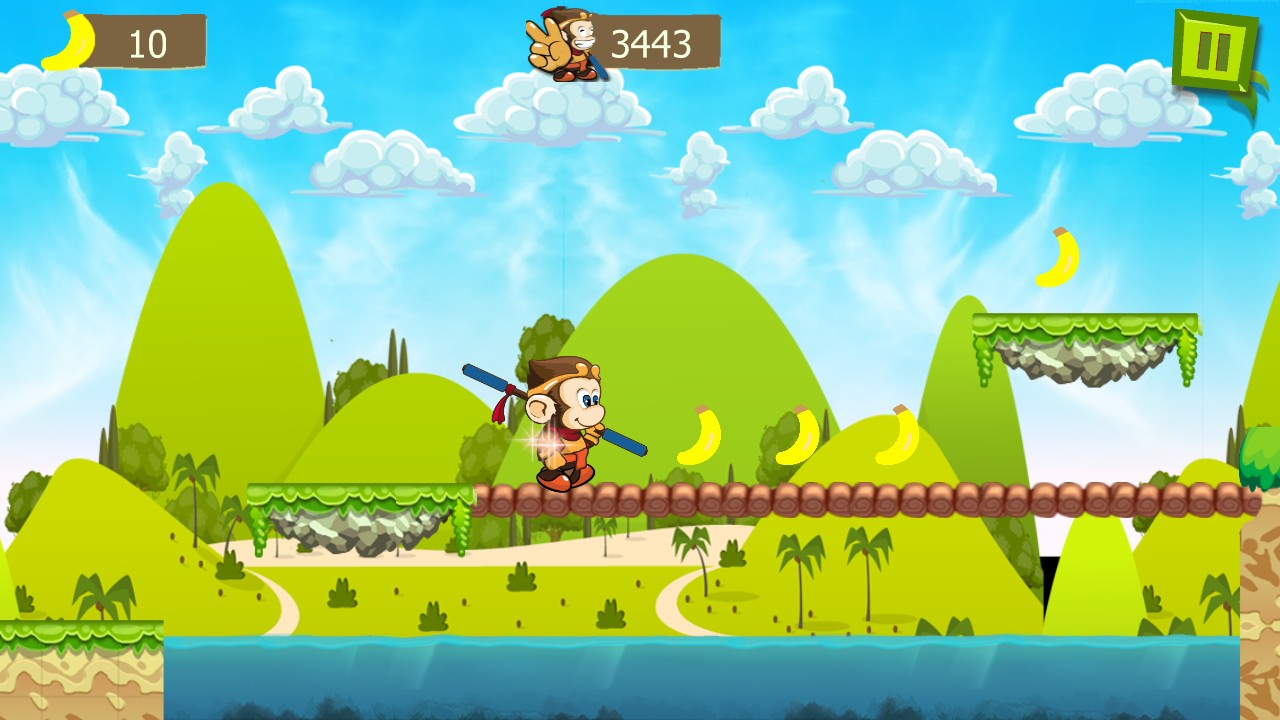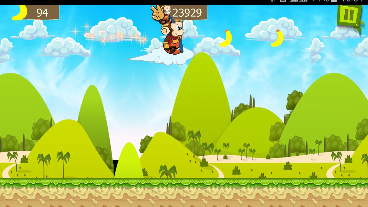 Your task is helping the Monkey running and jumping in the endless jungle. avoid obstacles and monsters and collect bananas as much as you can.