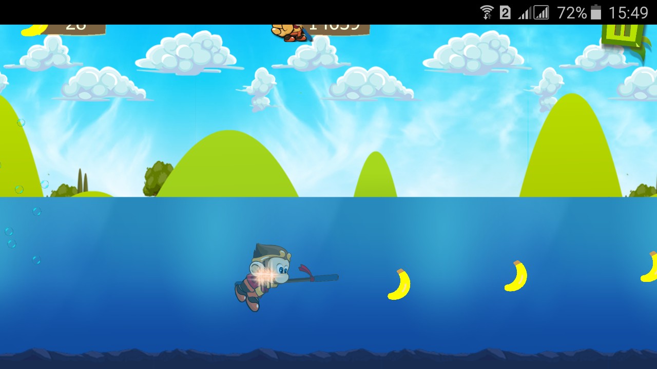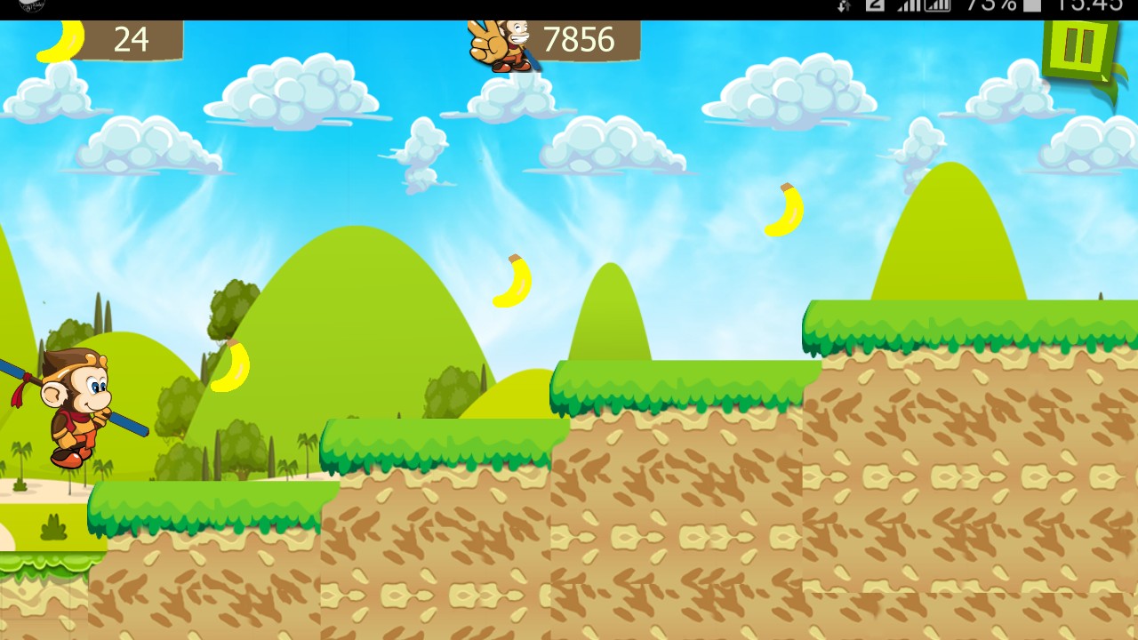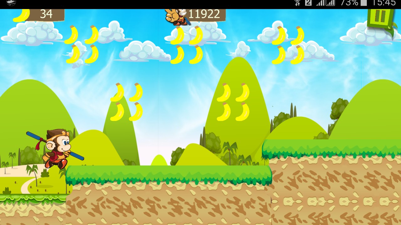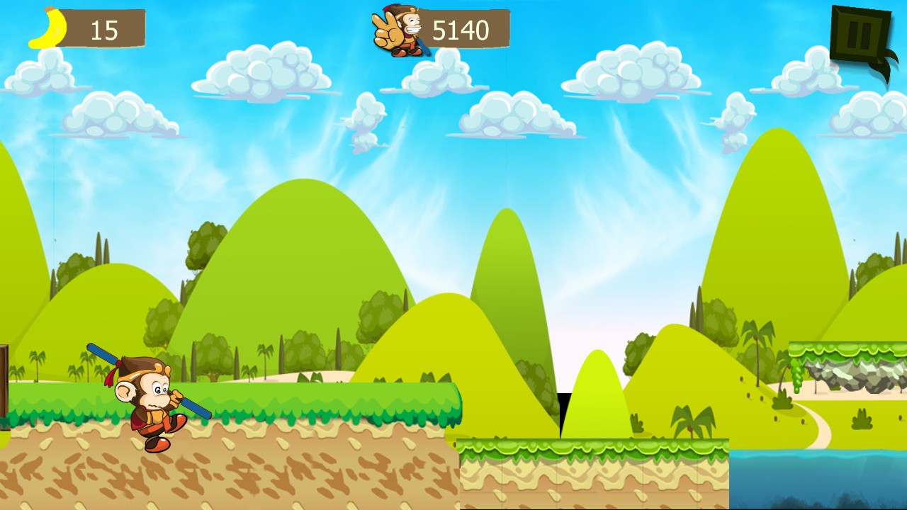 Your task is helping the Monkey running and jumping in the endless jungle. avoid obstacles and monsters and collect bananas as much as you can.