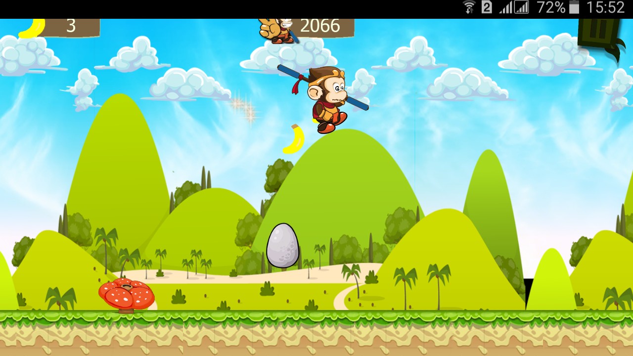 The monkey is very hungry and the only place to find food is the jungle but the Jungle is very dangerous it's full of obstacles and monsters.