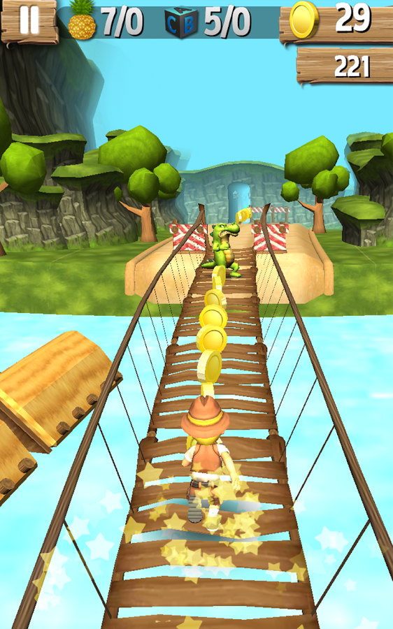 Jungle Run is a free android running game with addictive features. Alex is the runner character in the game, who escaped from Zulu tribe and now running in jungle. The tribesman and the deadly animals of Zulu tribe are running after Alex to capture him again. Alex is running in jungle to save his life by avoiding different obstacles, hurdles and animals on the way. Best runner game with features gamers admires to have in a running game, such as, 3D graphic, amazing Jungle audio and video visuals scenarios depiction, layout and Jinga-Lalaa-ho-ho voices, tap screen for beating the enemy, swipe left & right to get away from obstacles.