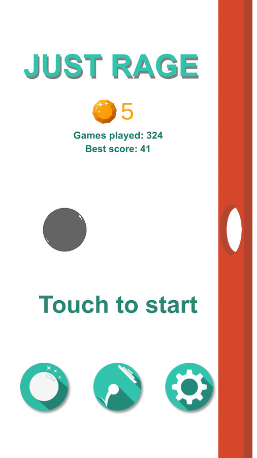 Just Rage ! Remember this name cause it will make you go crazy like Flappy Bird did ! What it's about ? Just touch your screen to make the ball go bigger to crush the walls or go smaller to pass through the holes. Easy right ? But you will lose ! And not just lose, you will rage aswell ! This game will be hard ! We've added some nice death phrases that will appear every time you'll die ! Needless to say that you will see those phrases very often !