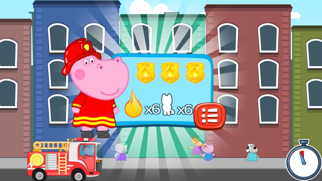 Alert! The city is in danger! The building is on fire. Who will suppress a fire? Of course, baby Hippo and fire patrol will! Don’t panic, rescuers are on their way!