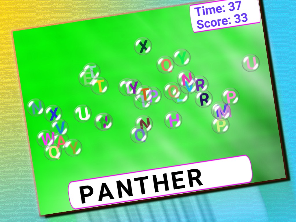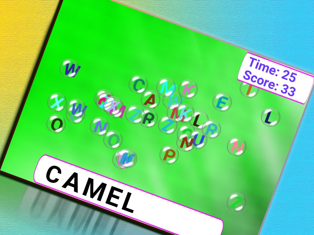 cool bubble pop game for finding alphabets of a given spelling