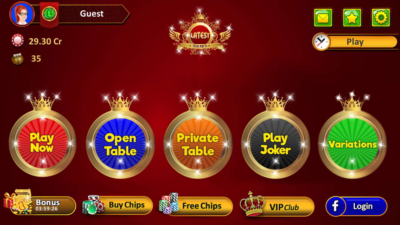 Download latest 3 Patti app and get 300,000 FREE CHIPS! Connect with Facebook and get 200,000 chips :)