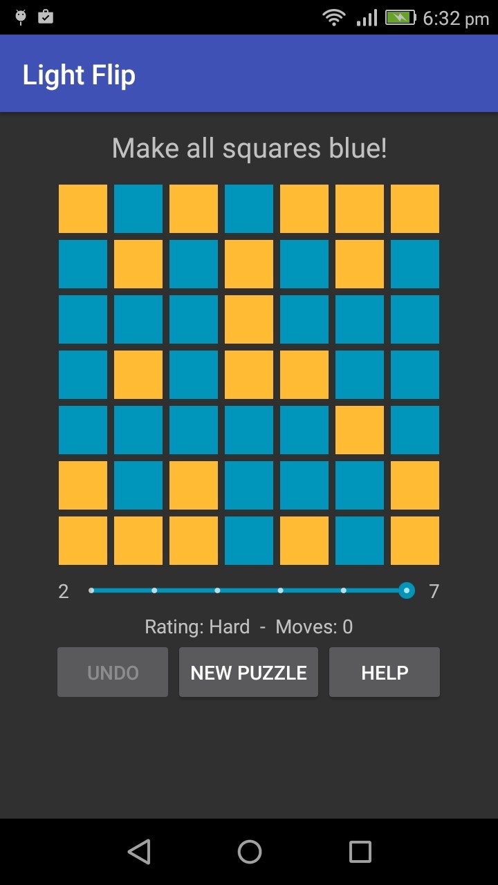 Tap a tile to change the color of all tiles in the same row or column. Can you color all the tiles blue with the least number of moves and master the puzzle? The first few boards are easy, but the larger boards are real brain teasers! Choose even harder puzzles where colors are cycled in 3 or 4 states!