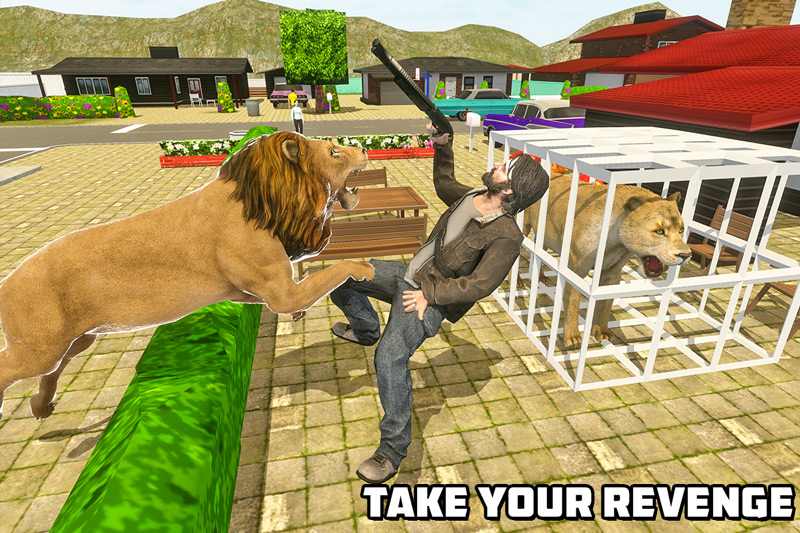 Angry lion attack & revenge story! Wild lion is on the loose, the city is your jungle. Run as fast as you can with those powerful legs. Release your mate from cruel hunters after deadly city battle in angry lion attack game 3D. Take control of a wild lion that pounces and attacks its prey. Angry lion revenge 2019, leap into a thrilling new adventure as a ferocious lion and hunt ruthlessly. You are made to slay and rule in lion fighting games. You have to be ruthless hunter to your prey with lion simulator. Hunt human or animals and release your mate from city hunters equipped with spears, sniper rifles, guns & ammo in lion city attack game with the best of lion survival simulation.