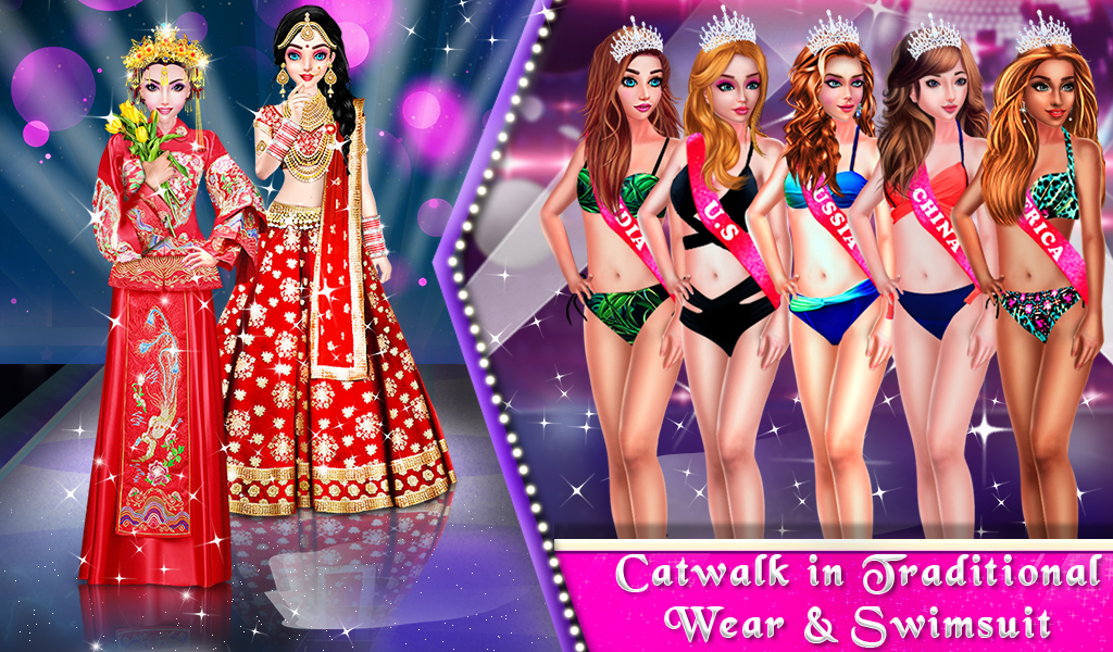 The contestants should show their culture and tradition in this round. So bring your county's tradition on the stage and do a fantastic catwalk in this miss world dress up game.