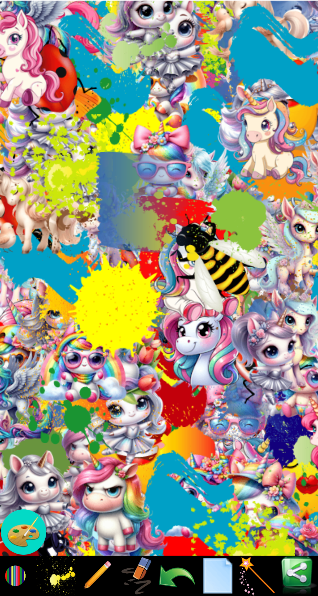 Create, save, and share your child's unicorn masterpieces with family and friends!