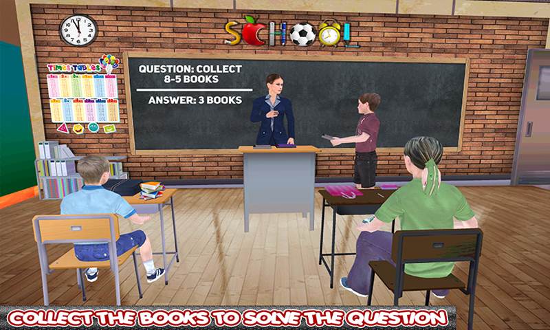Teacher give your task, and it’s your duty to complete the class task with the help of activity like play basketball. Add the number and find the correct room otherwise your level will be failed. Find books and collect them correctly according to the questions to success the missions by playing High School Math Education Kids Simulator.