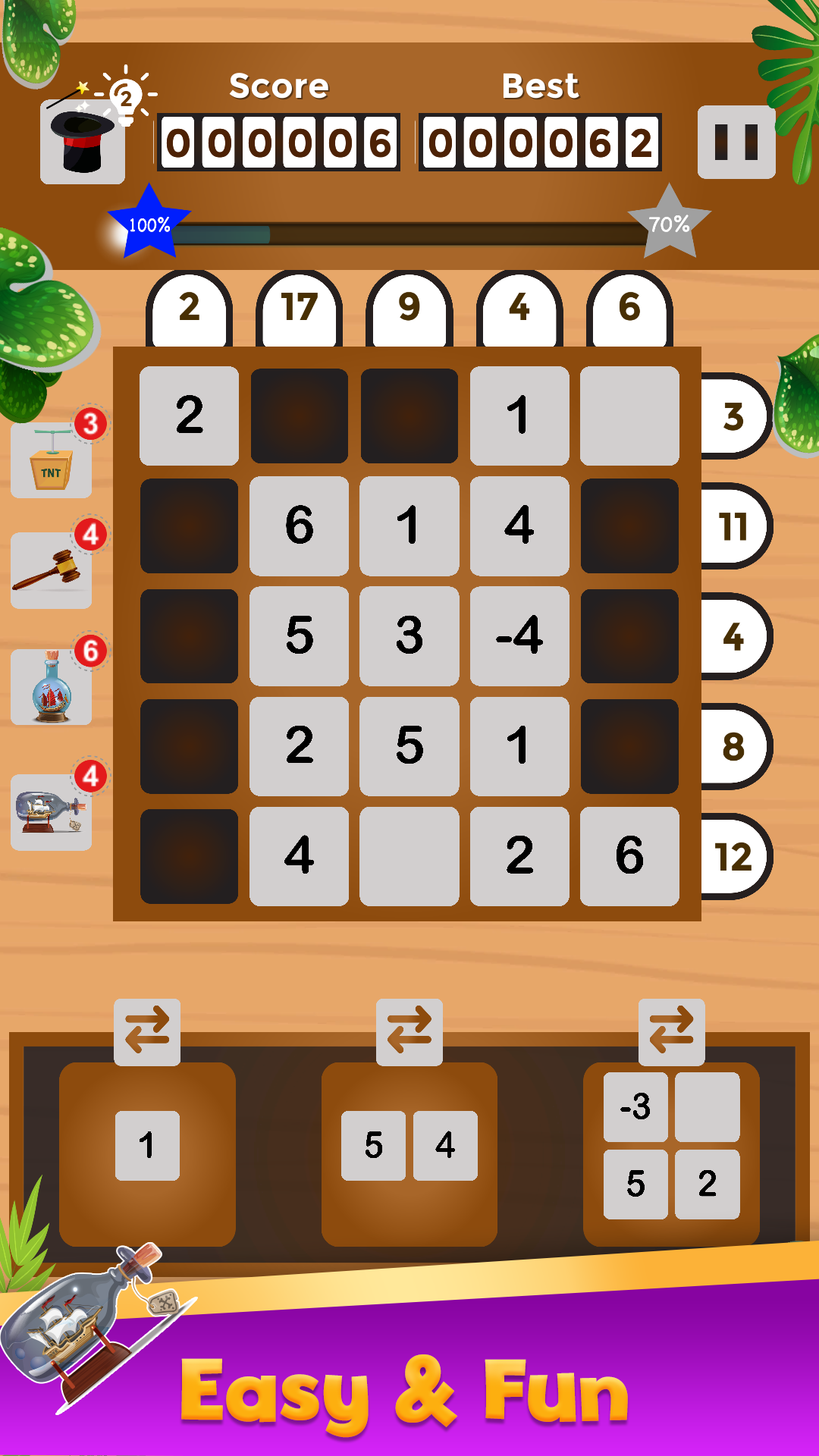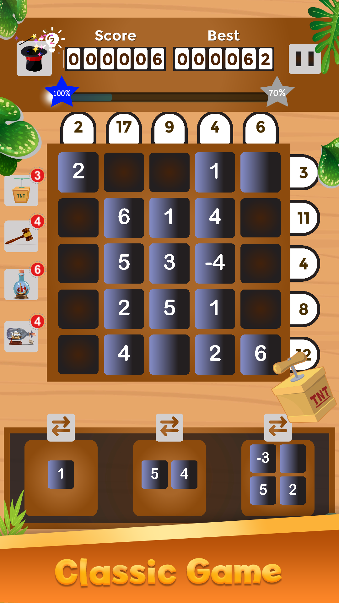 Drag number blocks across the board to reach a total of ten in any row or column, and you'll be awarded points! Simply tap and move the wooden number tiles to experience the wonder of numbers while also coordinating your eyes, hands, and brain. Put your logic and brainpower to the test, have fun, and enjoy yourself!