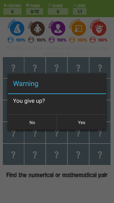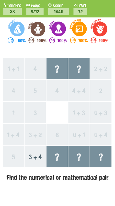 Three addition levels, three subtraction levels and three multiplications levels are waiting for you to show your mental abilities and concentration.