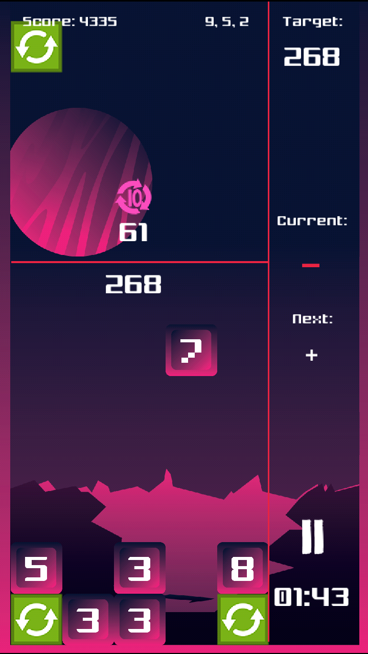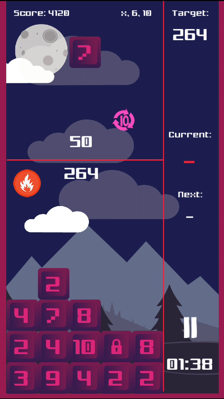 Mathris is an addictive number-based game where you have to think quick. You have a limited time to reach the target number using given numbers that keep stacking up, and operators that keep changing.
