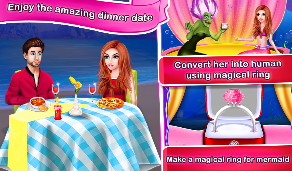 After getting human's legs she went to meet the prince who captured her in the aquarium cage. Prince falls in love with her in short time. Carol and Prince went on a date. Prince proposed to her but she rejects it and reveals that she was just taking revenge. What will happen next in this amazing story of mermaid rescue? To know, play this mermaid rescue game and have lots of fun.