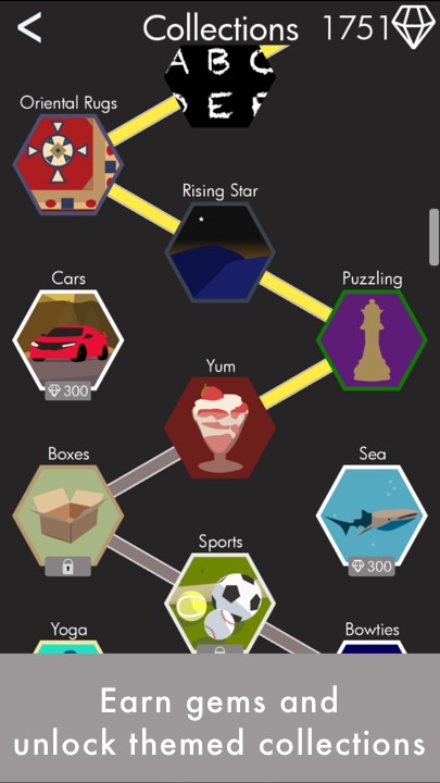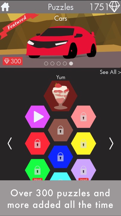Puzzle collections feature themes such as cats, aliens, yummy food, and more.