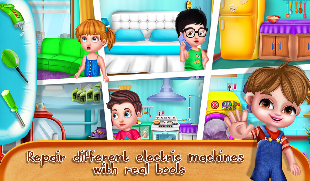 Hello Kids, It's your turn to run the coolest handyman's shop in your own town. Join with Michale in this Handyman game and prove yourself to be an excellent Handyman. There are tons of people are waiting to get your best services. So collect all repairing tools like Hammers, screwdriver, wrenches, pliers, screw and much more to be placed in a shop & get ready to fix all the problems. Here you can help your little friends with a number of projects like repair ceiling fan problems, fix the washing machine, refrigerator, air conditioner, find out the problem in the stove and solve it. So become a fireman and visit each & every view and try to fix every problem properly. Play and enjoy this Michael the Handyman game and don't forget to share it with your best friends and family members.