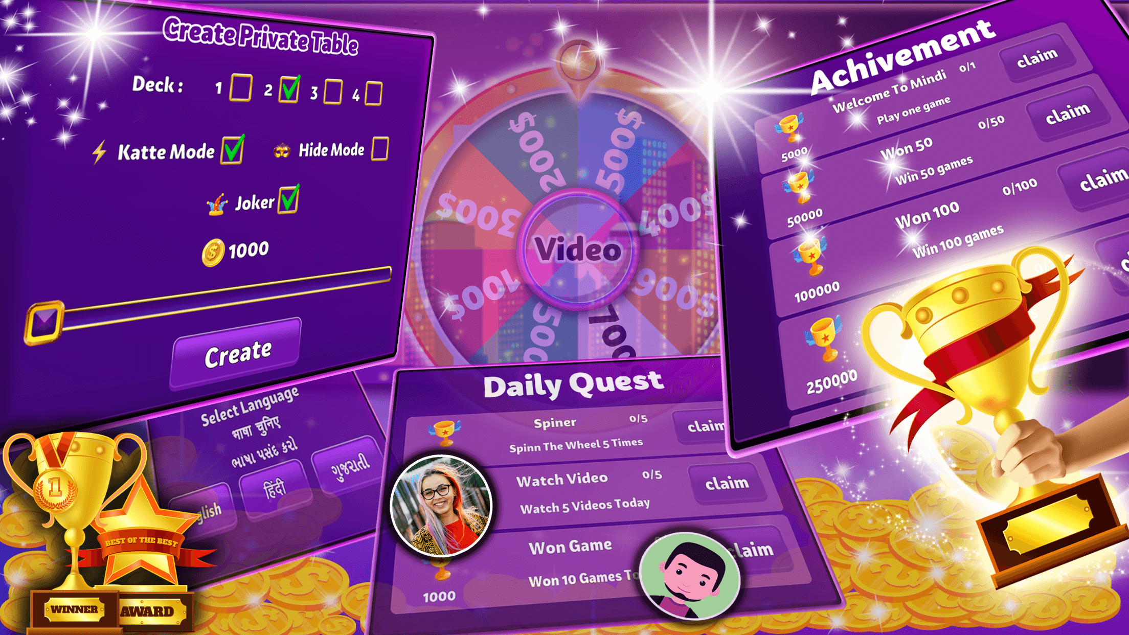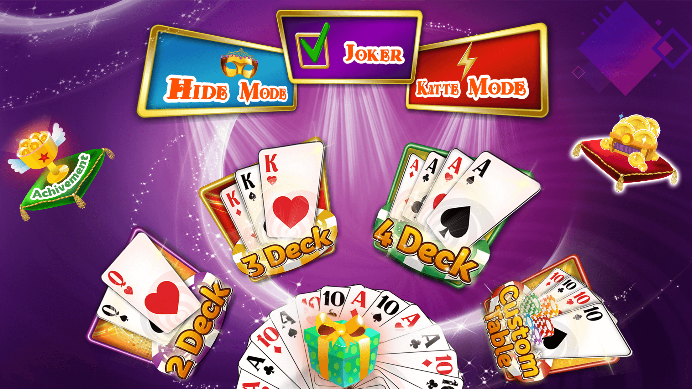 Mindi gives you unique experience every time you play it. Mindi is popularly called an exciting card game. Mindi is easy to learn. It is a team game and the ultimate objective is to win maximum no. of 10 numbered cards(10 of spades, 10 of hearts, 10 of diamonds, 10 of clubs) for your team and complete as many koats(coats) against the opponents.
