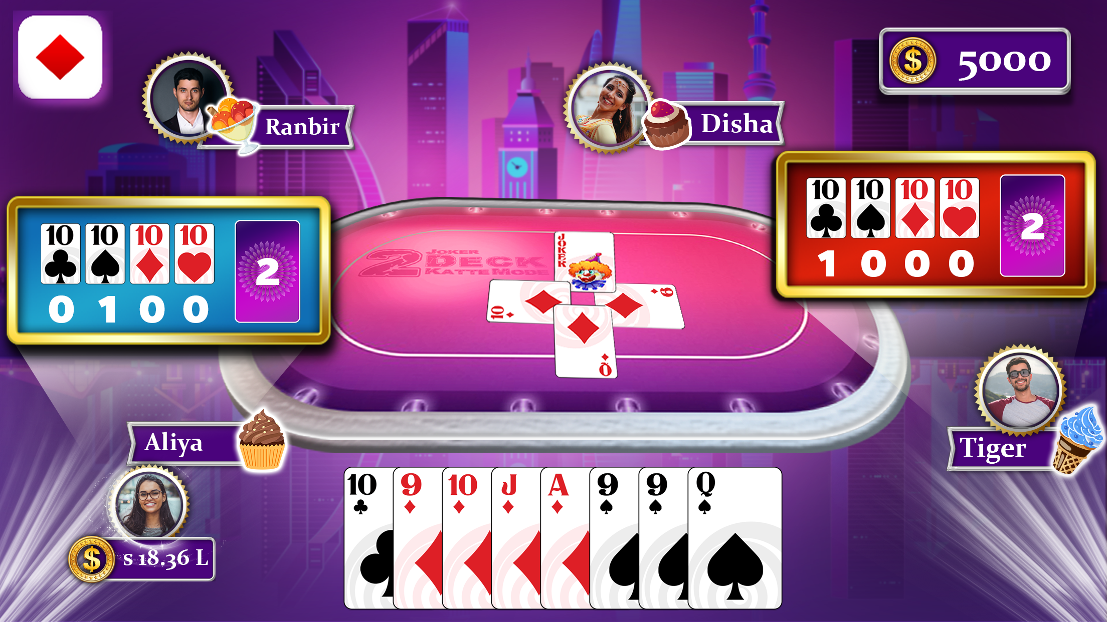 Katte mode - Play begins without choosing trump suit when the player is not able to follow the suit then whichever he/she chooses becomes the trump of the deal.