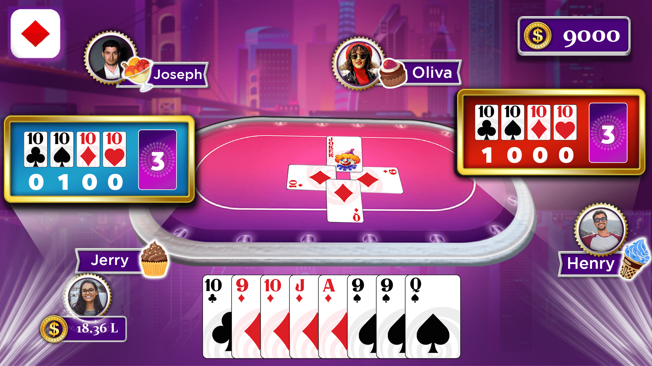 Mindi gives you unique experience every time you play it. Mindi is popularly called an exciting card game. Mindi is easy to learn. It is a team game and the ultimate objective is to win maximum no. of 10 numbered cards(10 of spades, 10 of hearts, 10 of diamonds, 10 of clubs) for your team and complete as many koats(coats) against the opponents.