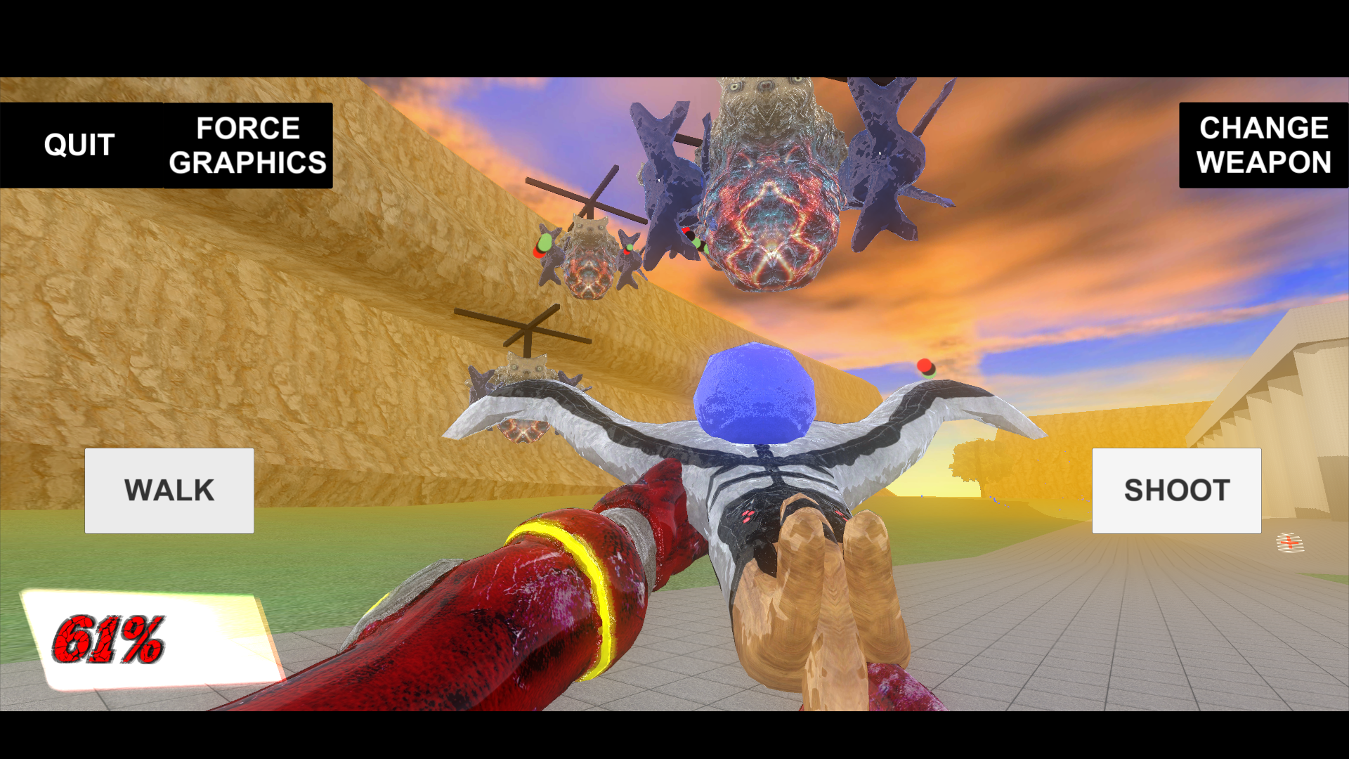 There are some super extraterrestrial beings who wants to rule the universe. Enemies spawn frequently and attack in large waves from across the game map, and the player is intended to dodge their projectiles and charges by jumping and strafing rather than by taking cover. The levels typically consist of a series of elaborate arenas, in which the player will defeat a set number of re-spawning enemies before proceeding to the next.