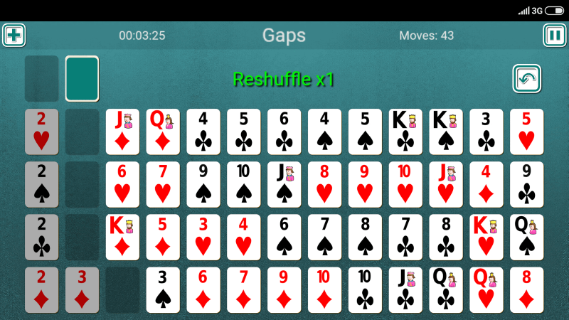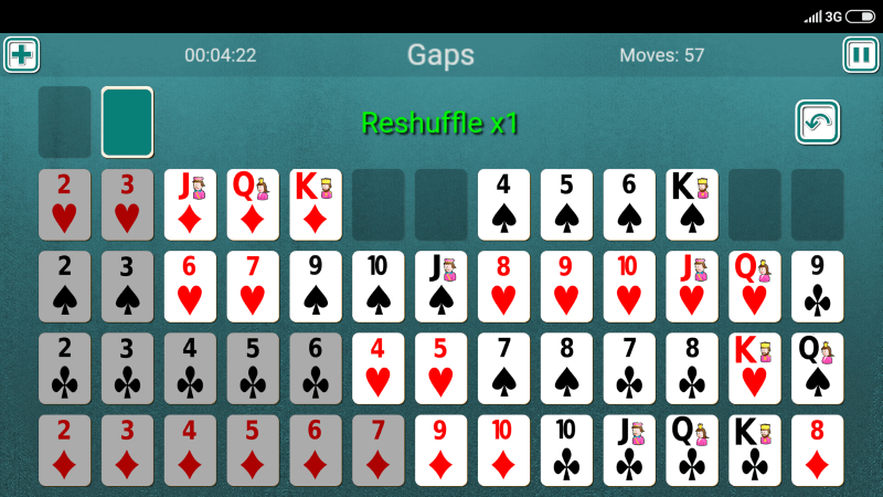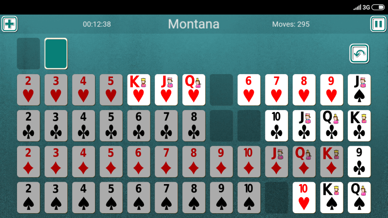 In Montana family of card games, cards are arranged from Deuce to King in 4 rows using one standard 52-card deck. Player is dealt all 52 cards at the beginning in 4 rows of 13 cards. Aces are then removed to create gaps. Player is required to move the cards in the gaps so that it is one rank higher from the card to its left. The aim is to move all cards around to create 4 in-suit sequences from Deuce to King in each row.