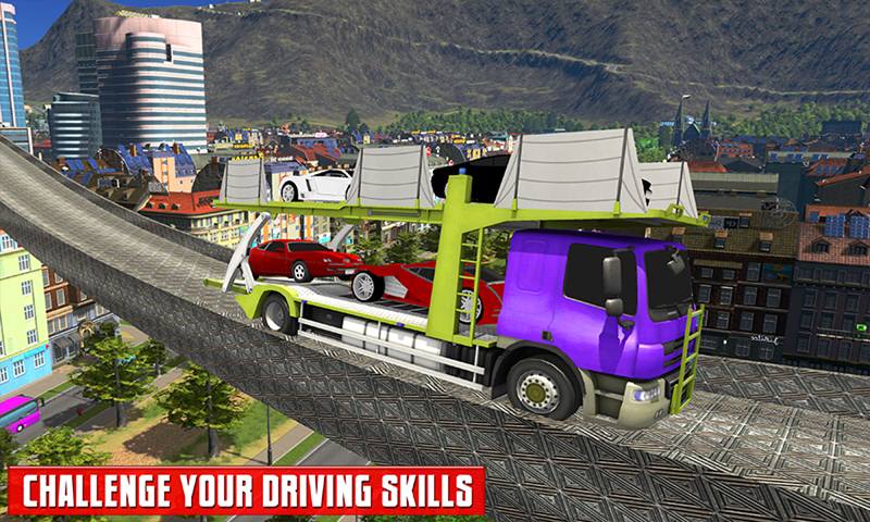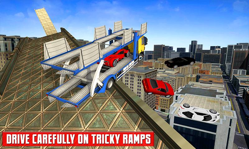 We are ready to welcome you in our sensational Multi Car Transporter Truck: Vertical Ramp Simulation, travel and drive the fully loaded truck with cars through the vertical mega ramps and flyovers paths to reach your destinations. Unique game play you have never seen before, just strap your seat belts and drive on the trickiest tracks to challenge your driving skills. Deadly vertical tracks and realistic truck driving controls will give you the feeling that you are really driving the loaded car truck on the self-destruction tracks.