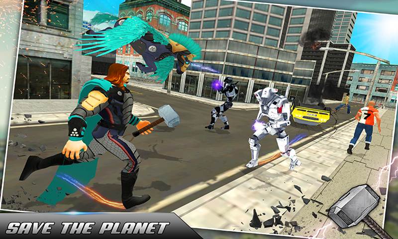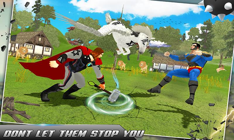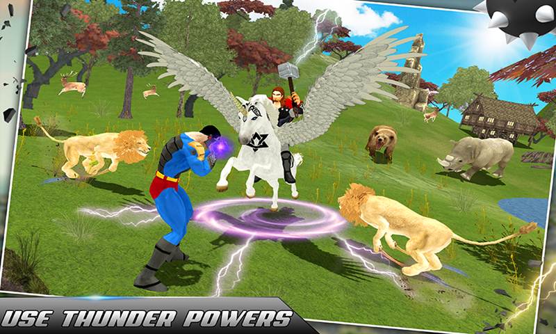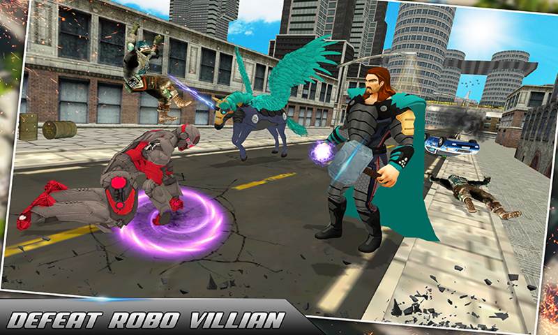 Welcome again to the new devastating action fight game with horse like flying creature in Multi Hammer Unicorn Hero Vs Super Villain. His other companion is well known hammer hero one of the favorite super hero in recent era. Both now came with a mission to save humanity from enemies in the shape of robots, gangsters and last but not the least super villain. Our multi hammer unicorn hero has the unique power to compete with these cruel rivals.