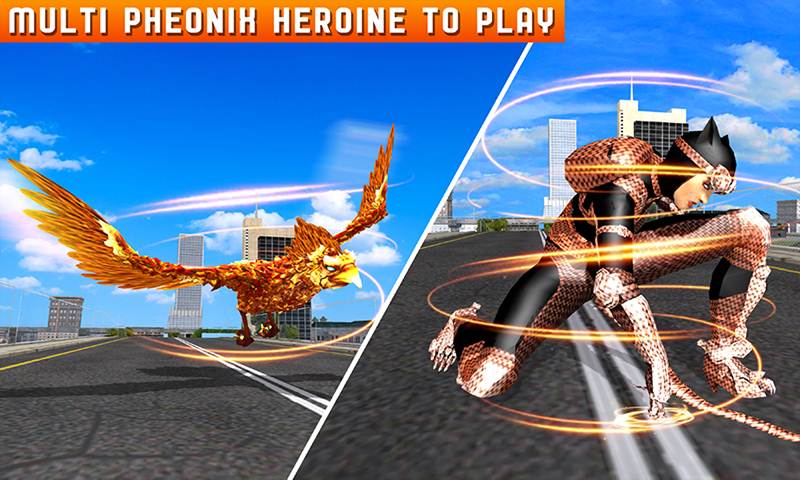 Flying multi phoenix girl city survival 2019 is ahead with a city rescue mission in lady phoenix bird games. Select your phoenix bird to survive in the town with the help of your magical attack like fireball attack. Robotic crime city world rescue mission and fighting with a kick, punch combos as well as magical power. Beat the gangster to rescue innocent civilians from evil forces of the black multi area.
