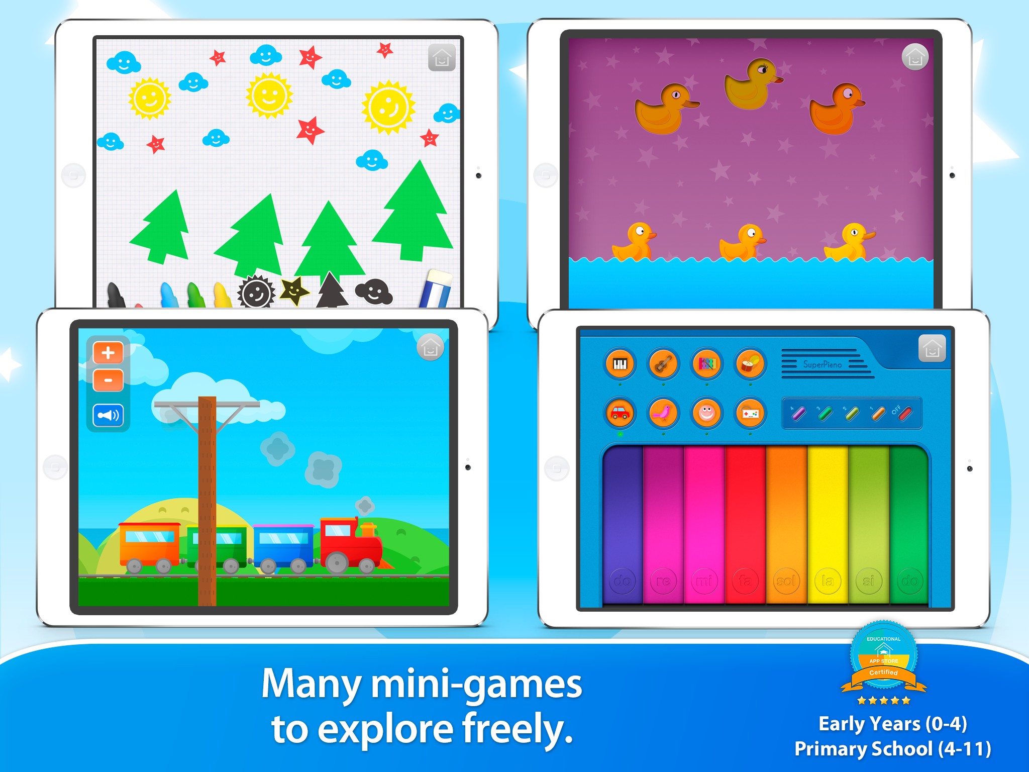 An application designed for children, where they can experiment with numbers, shapes, colors, music, and even time.