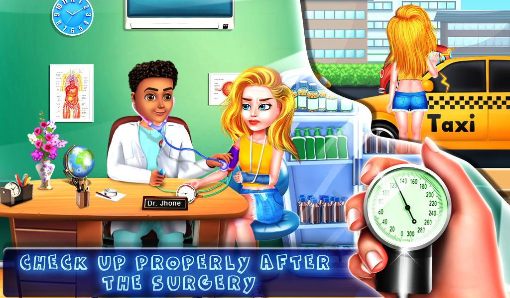 Blood test is required where the possibilities of blood waste are higher so better test the blood group before those surgeries. Use multiple tools to perform these complicated surgeries. Moreover, you need to dress up the doctor and nurse for the surgery and don't forget to clean doctor's cabin and organize it. Give the right medications to the customer and put all the money in its right place. You can also upgrade your hospital equipment using coins which you get from every activity and surgeries.
