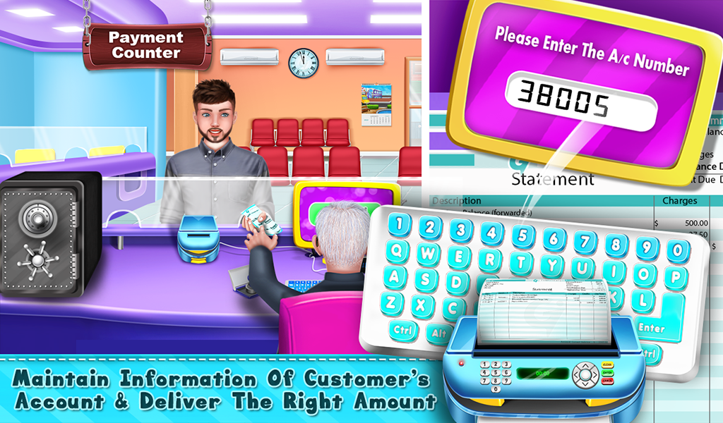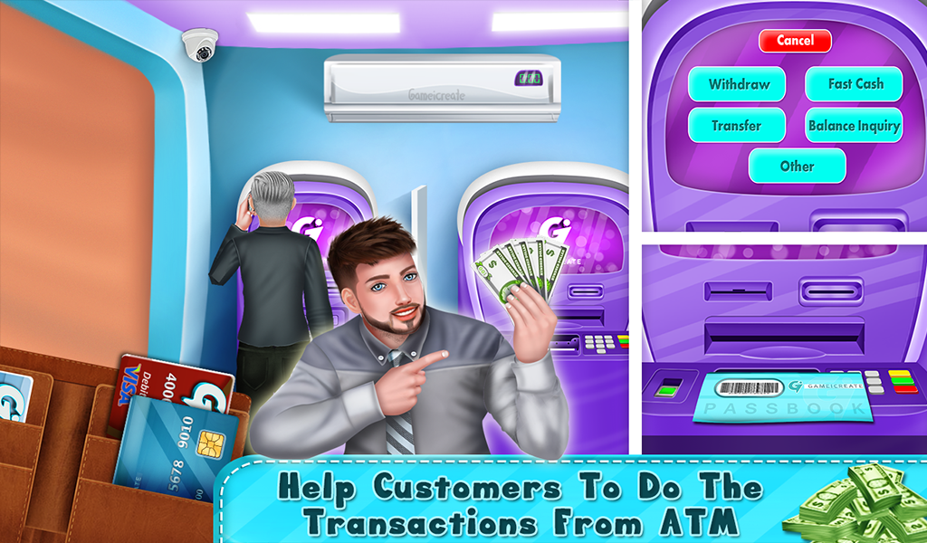 In this bank manager & cashier game, you will enjoy tons of bank education tasks.