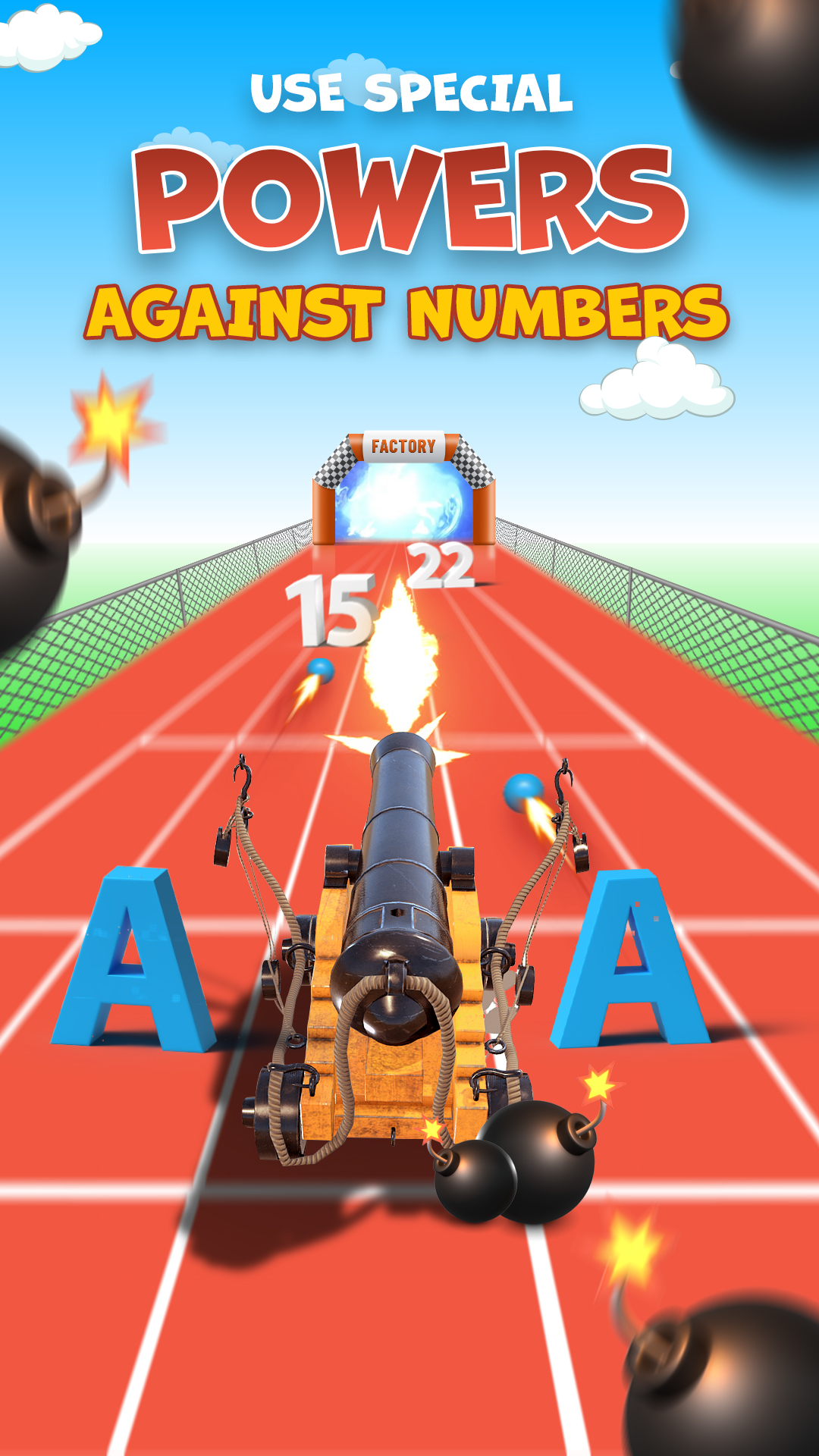 Swipe your finger to match the same alphabets against the number attack pacing towards you. When all the waves in a level are finished you progress to the next level facing challenging boss number attack boss fights.
