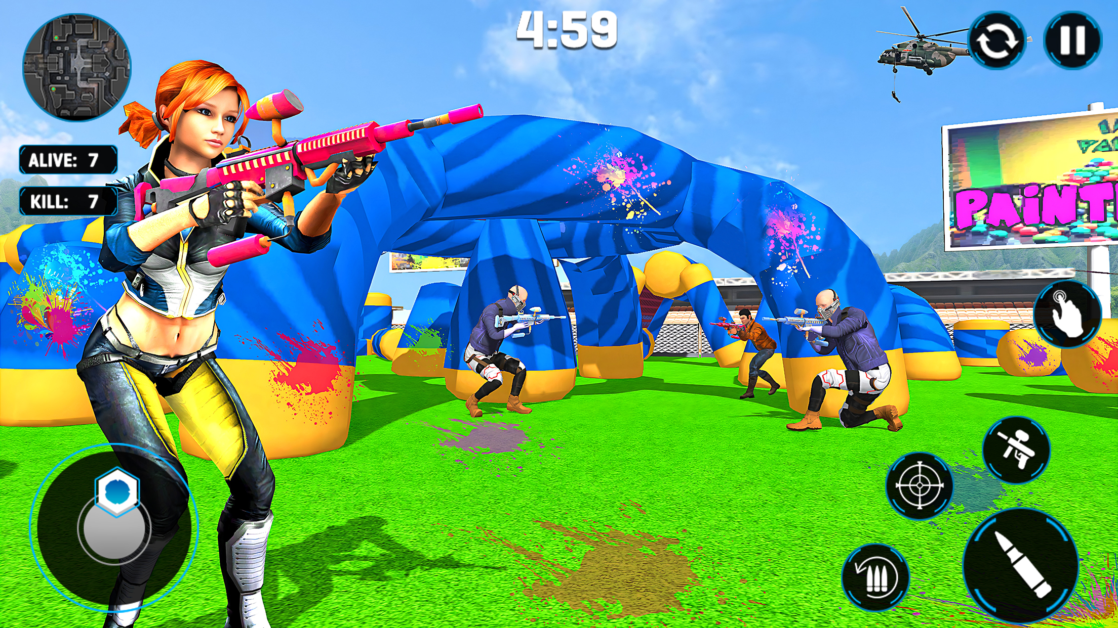 As you step onto the field, you'll find yourself in a dynamic environment filled with obstacles, bunkers, and hiding spots. The sprawling landscape offers a variety of terrains, from dense forests to urban landscapes, each providing unique challenges and opportunities for tactical maneuvers. Take cover behind walls, barrels, and natural elements as you strategize your next move. Equipped with a state-of-the-art paintball gun, your goal is to eliminate opponents by tagging them with colorful paintball pellets. The high-tech markers deliver precise shots, allowing you to aim with precision and accuracy. As you take aim and squeeze the trigger, watch the paintball soar through the air, leaving a vivid trail as it hurtles towards your target.