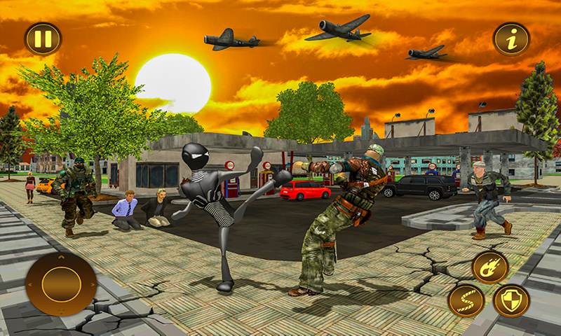 Grand black stickman hero is a new addition in superhero action game of 2019 against clown robbery and city gangsters. Flying stick panther savior city survival is a unique game with city rescue mission where you save the innocent civilians from the criminals with the help of your fighting as well as powerful weapons in open real reworked saving stickman street superhero defender game.