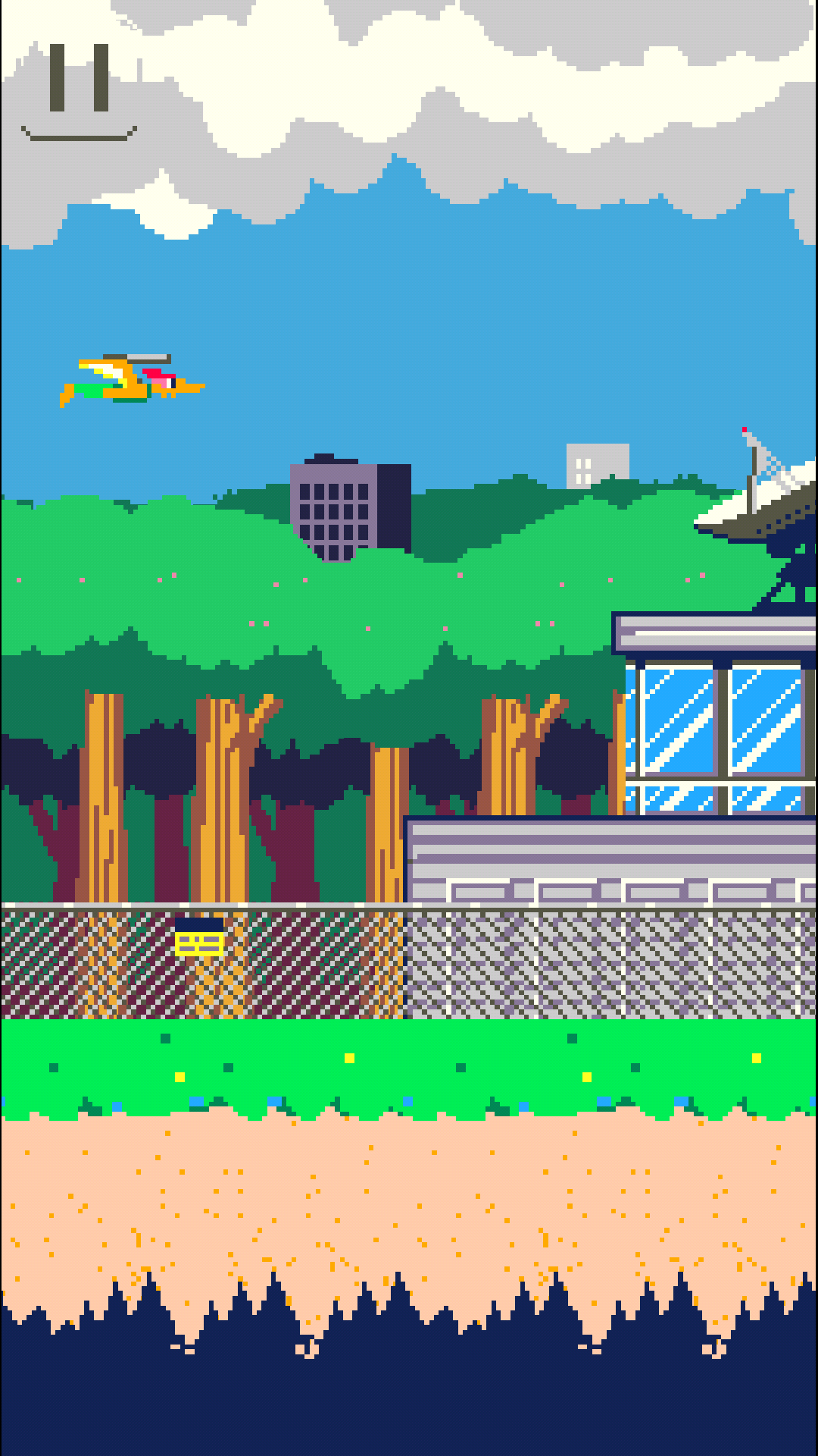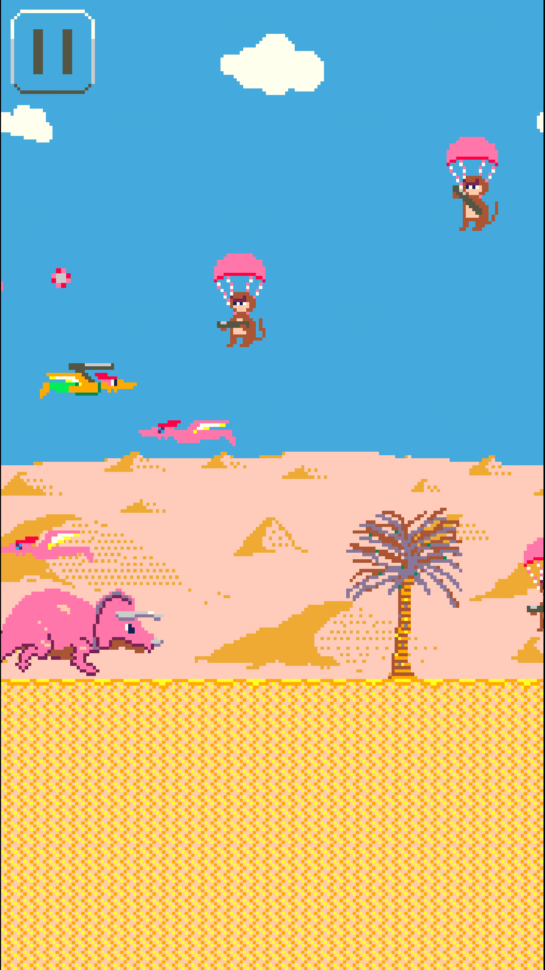 The game has several levels. The objective is to reach the end of each level without getting hit by an enemy. To achieve this, the player can change the flying height of Peter by sliding up and down on touchscreen. Also, the player can make Peter shoot into an enemy by tapping the touchscreen. However, if Peter hits an hypnotized dino, the mission is failed.