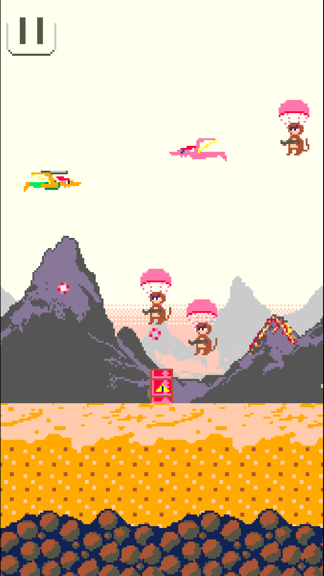 Peter O' Dactile is a sidescrolling shooter game that can be played one handed.