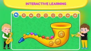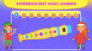 Can learn to play amazing tunes. The song is played in "Auto Play" mode to help you learn the melody. Then you may play it on your own with the help. The music is accompanied by amusing figures who teach the kid which note to play. You have the option of playing songs on the following instruments: Flute, piano, xylophone, guitar.