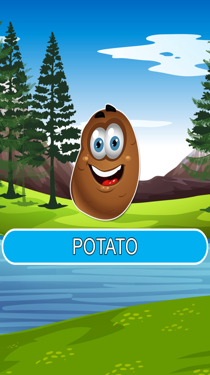 the picture with the name of that fruits or vegetables like potato or banana