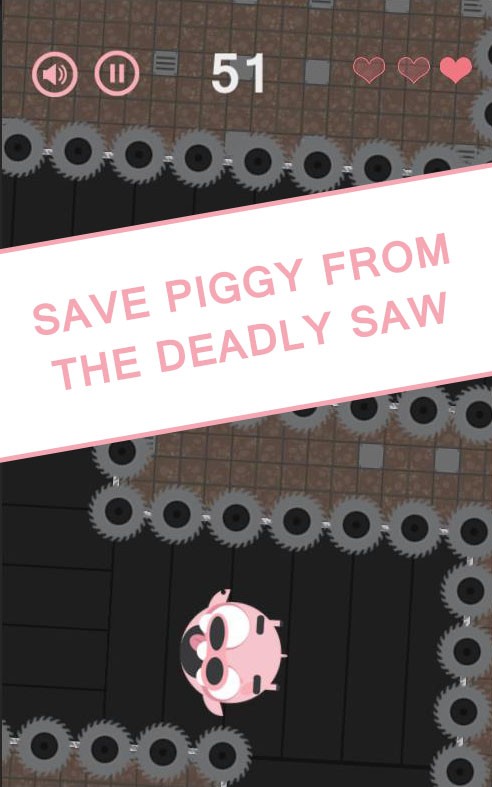A simple but addicting 2D non stop running game where players need to tap on time to change the piggly's direction to avoid those deadly saws.