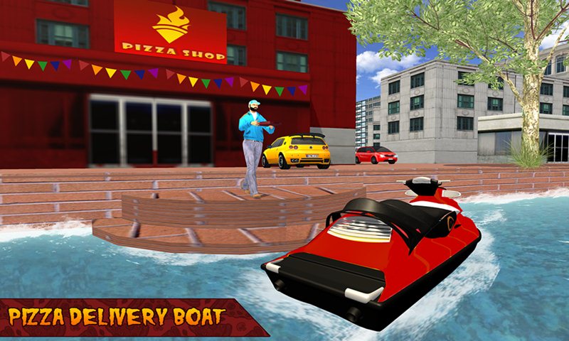 PIZZA DELIVERY WATER BOAT SIMULATOR is an adventurous and delightful game where you play as pizza delivery boy and beware from naughty kids which are trying to snatch the pizza from you. This pizza delivery water boat is designed for the lovers who want to play the role of pizza delivery boy in the water city. This delivery duty is tough and also a challenging job with advanced water Jet Ski pizza delivery. In this racing game, drive super-fast boat to complete pizza deliveries in time that you have never seen before in any other pizza delivery games. You deliver delicious pizza in different water city areas like home, school, building and offices. Water boat pizza delivery game is full of funs and challenging missions are waiting for you.