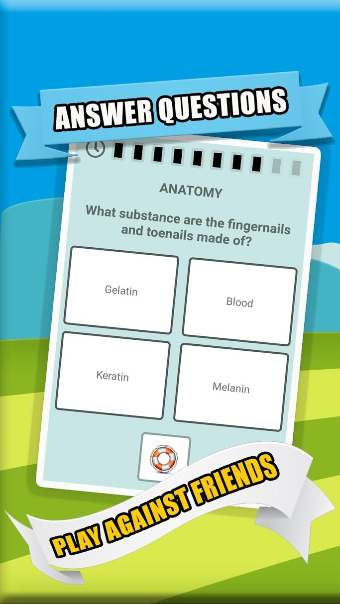 Use power-ups and boosts to outsmart your opponent (friend?) - the key to win however is to answer correct on the questions.