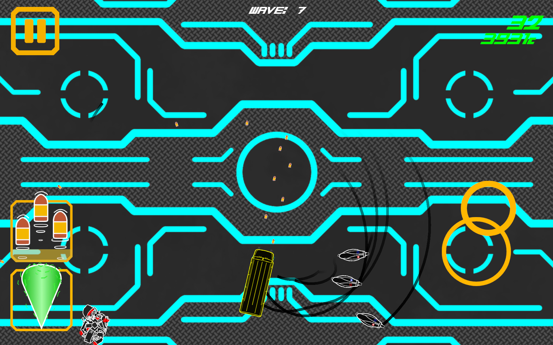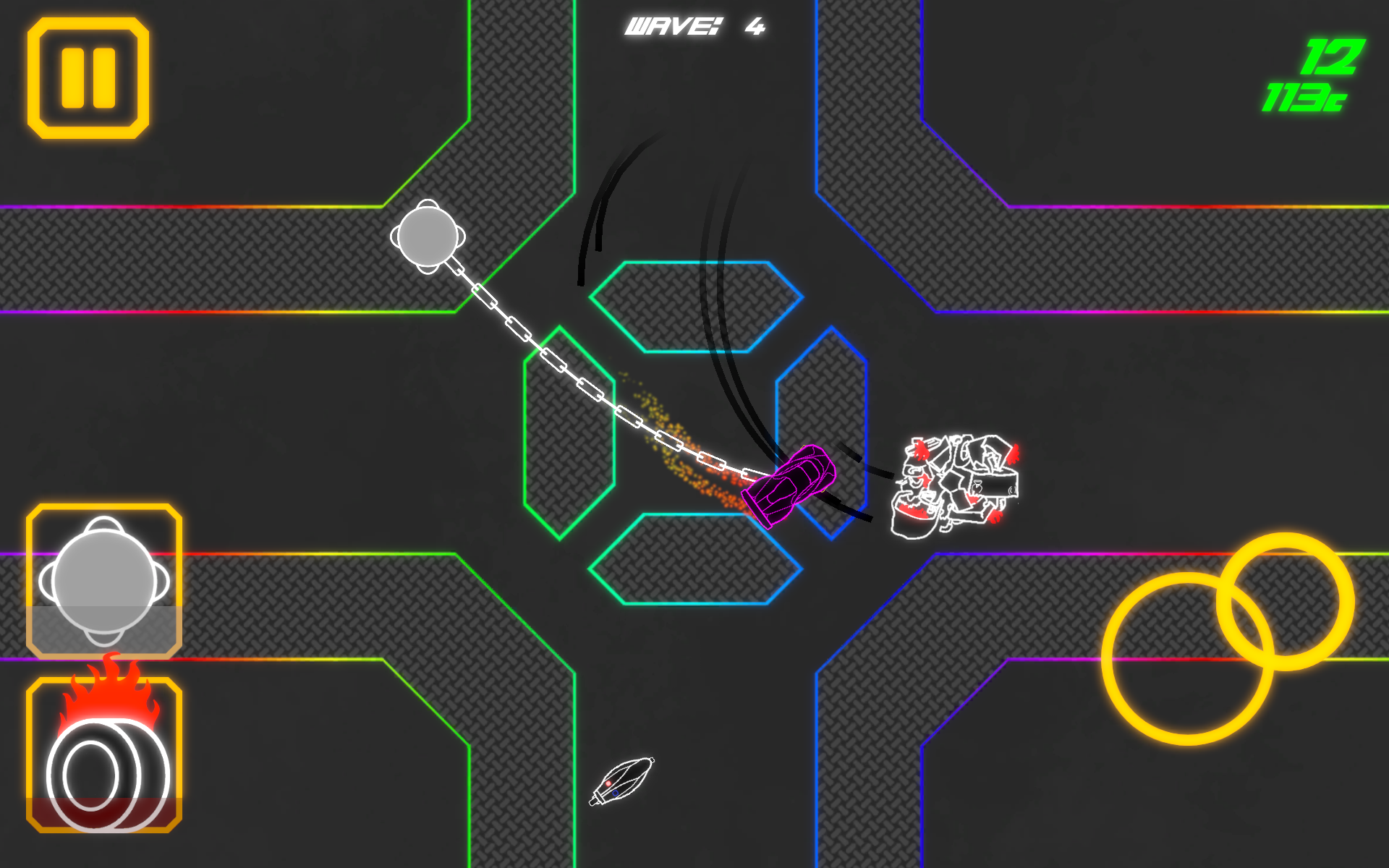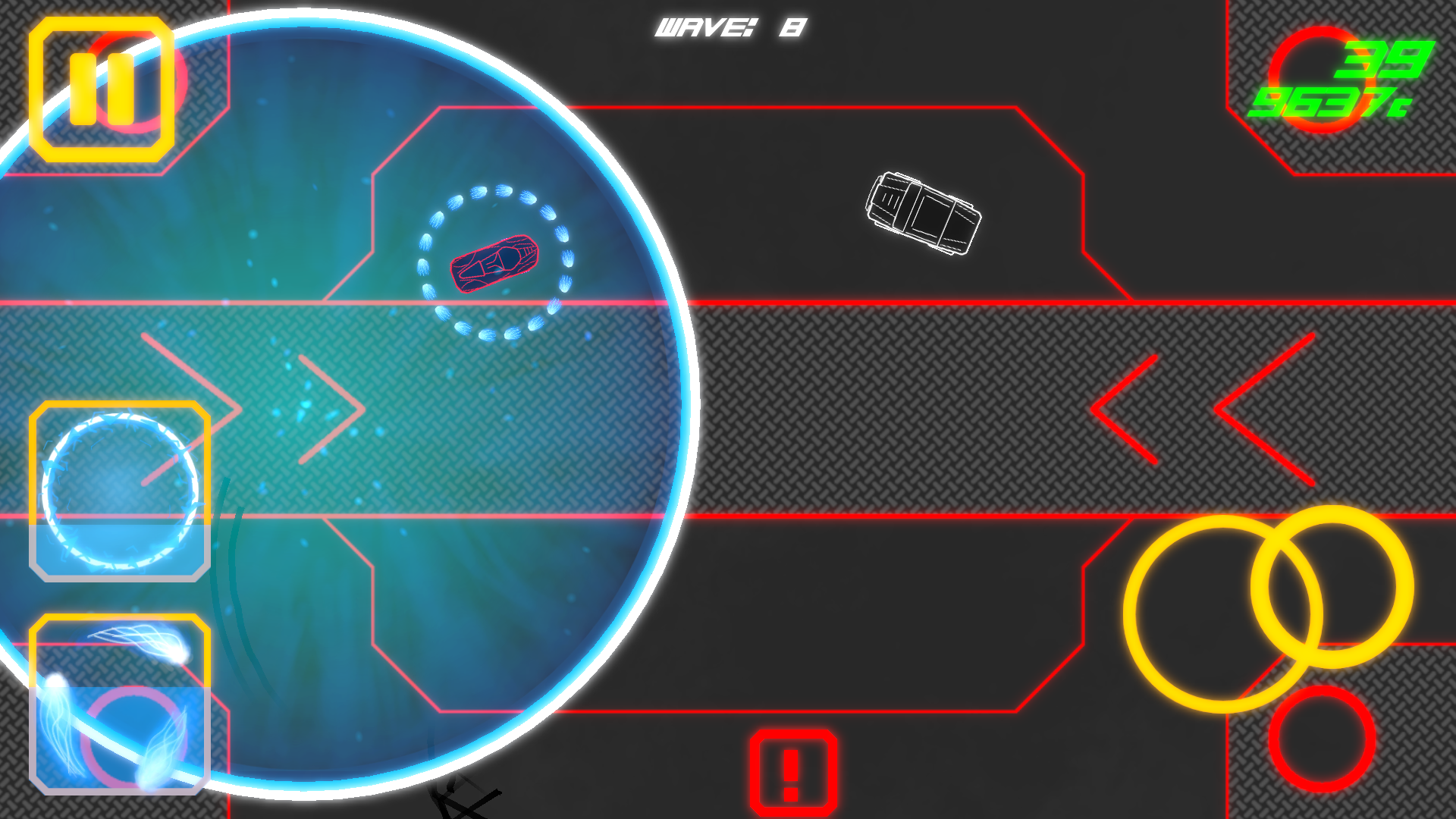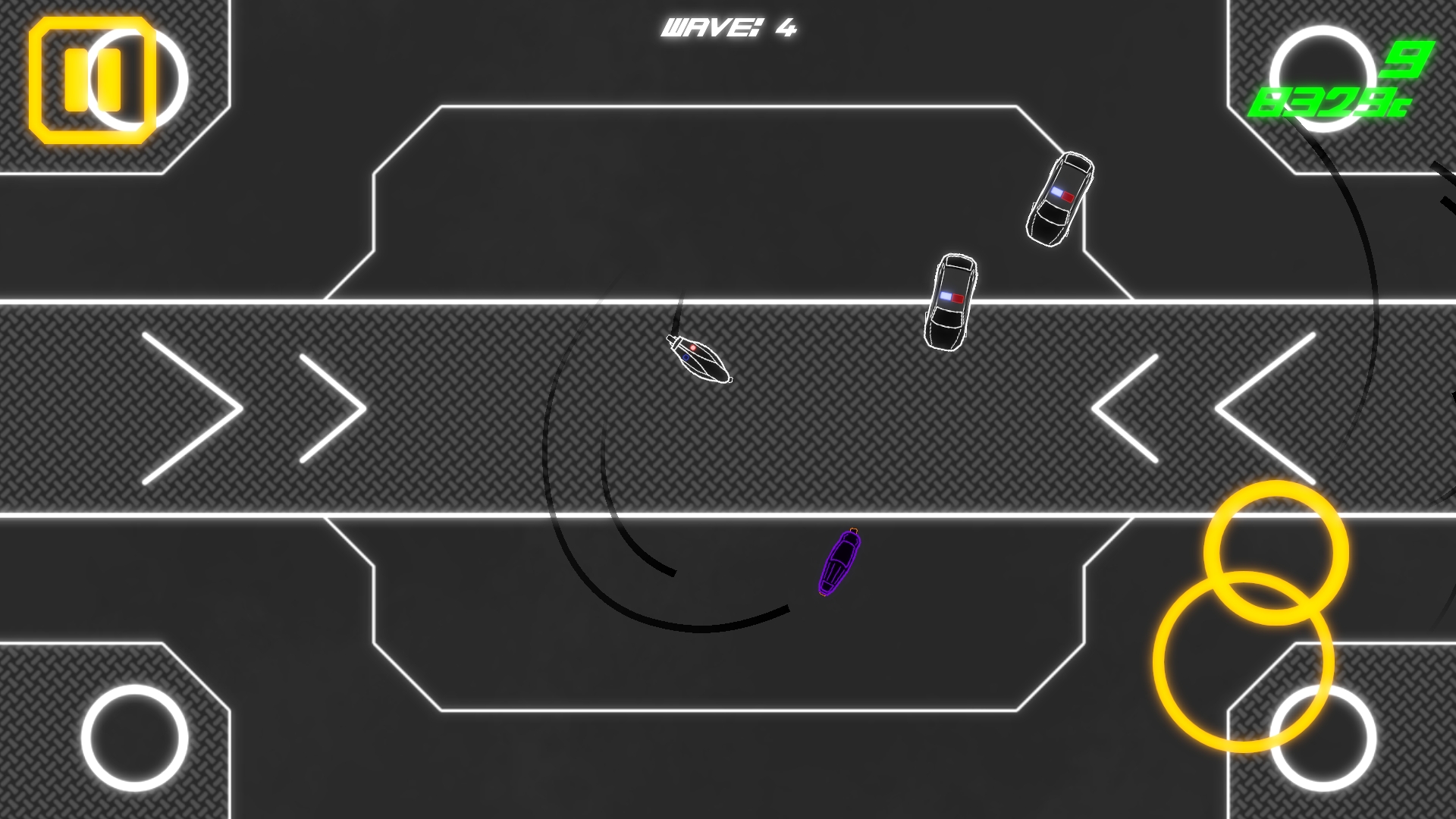 In "Racers" you flee from the police. Sounds simple, but there are a few problems: The space is very small, the police is smart and you... don't have any brakes. There are various different items available, such as a shockwave or a laser. Let your opponents explode by hitting them with your weapons or letting them ram each other until you finally are ( or were...) the next explosion.