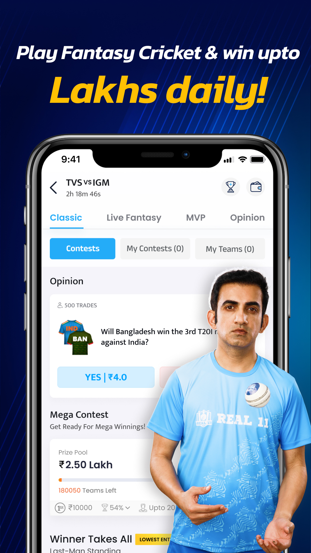 Why wait? Install the Real11 app now to play fantasy sports, and opinion-trading, and win exciting rewards daily!